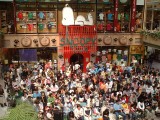 イベント開始直前、大勢の観客で賑わうタウンショップ前。