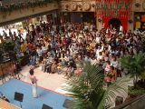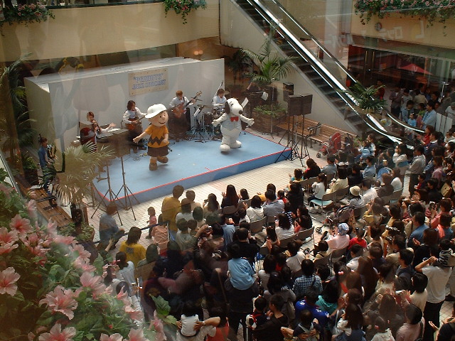 イベント開始前から、たくさんの人が集まっていました。司会のお姉さんが登場したところです。 |