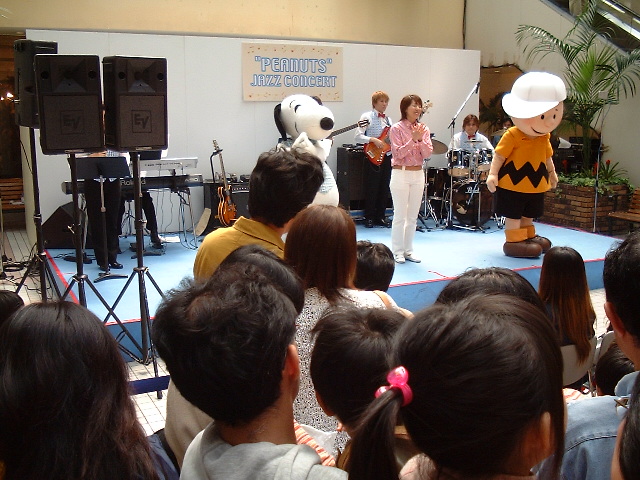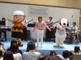 ステージに現れたスヌーピーとチャーリー・ブラウン。バンドのメンバーもスヌとお揃いの衣装。 |