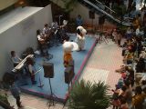 Jazzバンドの生演奏でダンスを披露するスヌーピーとチャック。 |
